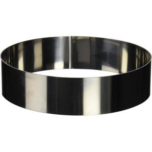 Aro circular de 18 cm de diámetro y 4,5 cm de altura, ideal para usar como molde o para emplatar.