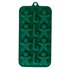 Molde de silicona para chocolate con formas de bastones de caramelo y muñecos de jengibre.