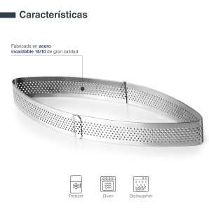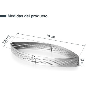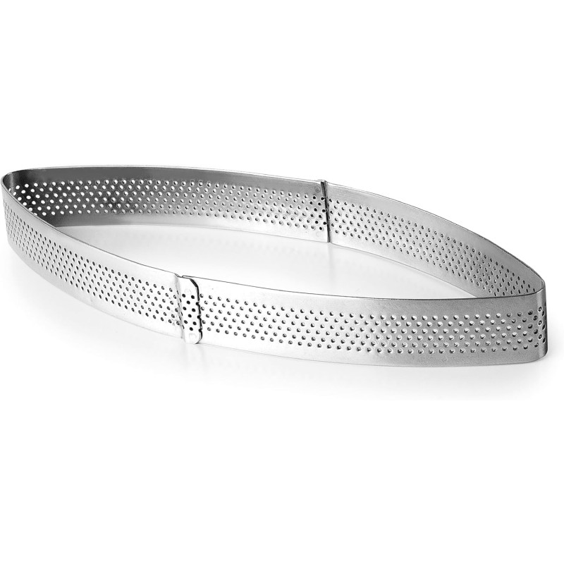 Aro de acero inoxidable para tartas, con forma de hoja o calisson, de medidas 18 x 7,8 x2 cm.