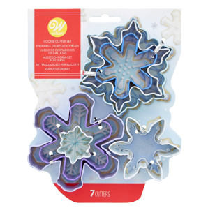 Juego de 7 cortadores con formas de copos de nieve y snowflakes.