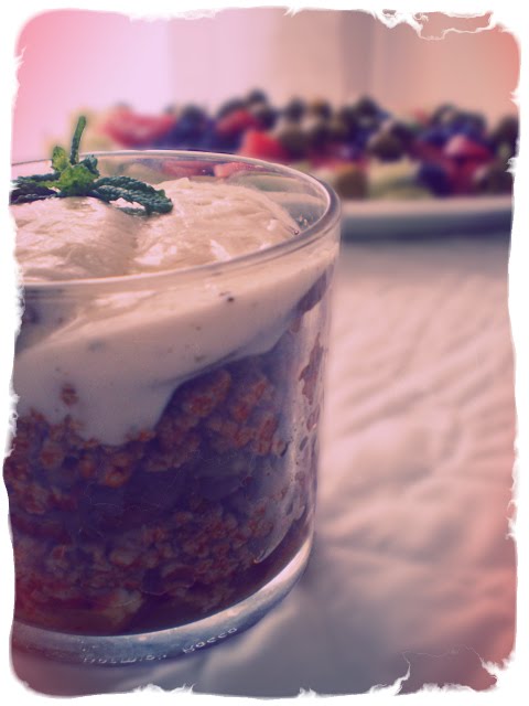 Una moussaka muy coqueta en ese vasito.